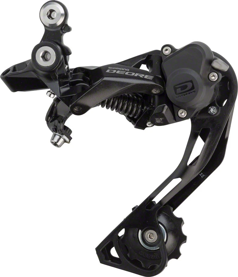 Shimano’s Deore Shadow+ Rear Derailleur is loaded with mountain bike technology. The Shadow design tucks the rear derailleur closer in to the wheel, reducing damage from rocks, roots, and trail obstacles. When it comes to gear changes, Shimano’s Dyna-Sys supplies consistent, smooth shifting across the entire cassette. And the Shadow+ clutch maximizes chain control by virtually eliminating chain slap and excess noise with its integrated cage-tensioning clutch.