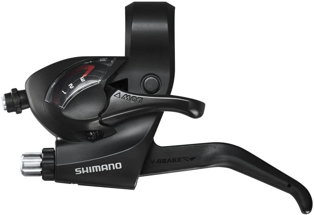 The Shimano Tourney TY EZ FIRE Plus Shift/Brake levers combine Reach Adjust, SIS Index shifting, and an Optical Gear Display in a durable assembly.