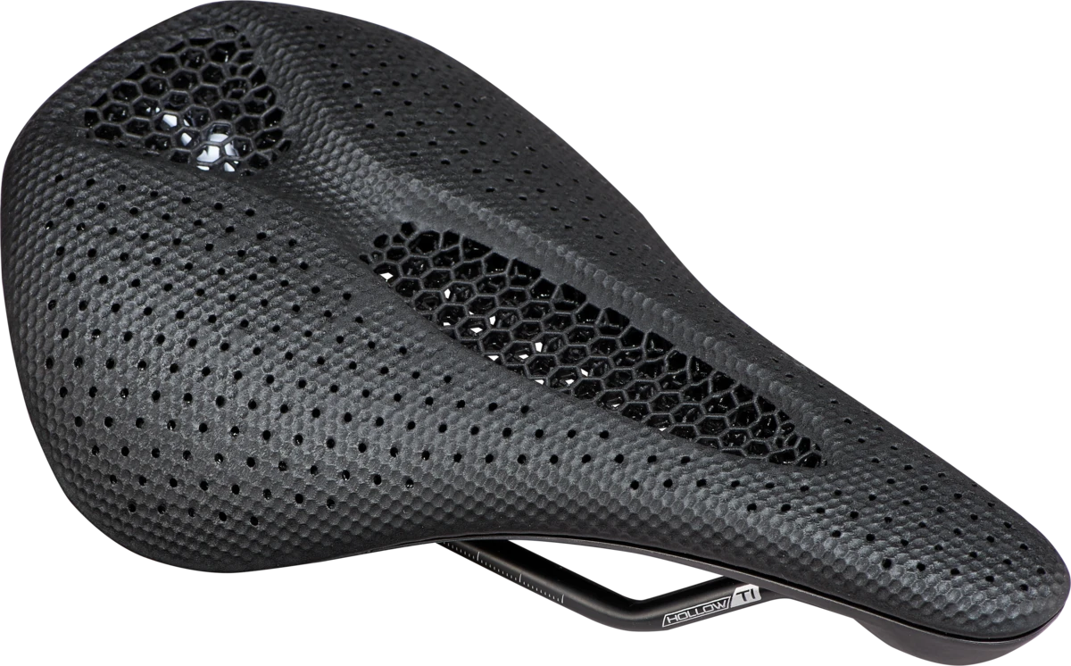 The Power Pro with Mirror starts with our Power shape—beloved by riders worldwide for its extra-wide and elongated Body Geometry channel—and is topped with the exact same Mirror pad as our S-Works Power with Mirror, a patent-pending matrix of 14,000 struts and 7,799 nodes, each of which can be tuned individually to deliver unprecedented sit bone comfort and soft tissue protection. But our Pro-level saddle features titanium rails and a reclaimed carbon fiber base to bring Mirror technology to more riders on more terrain than ever before.