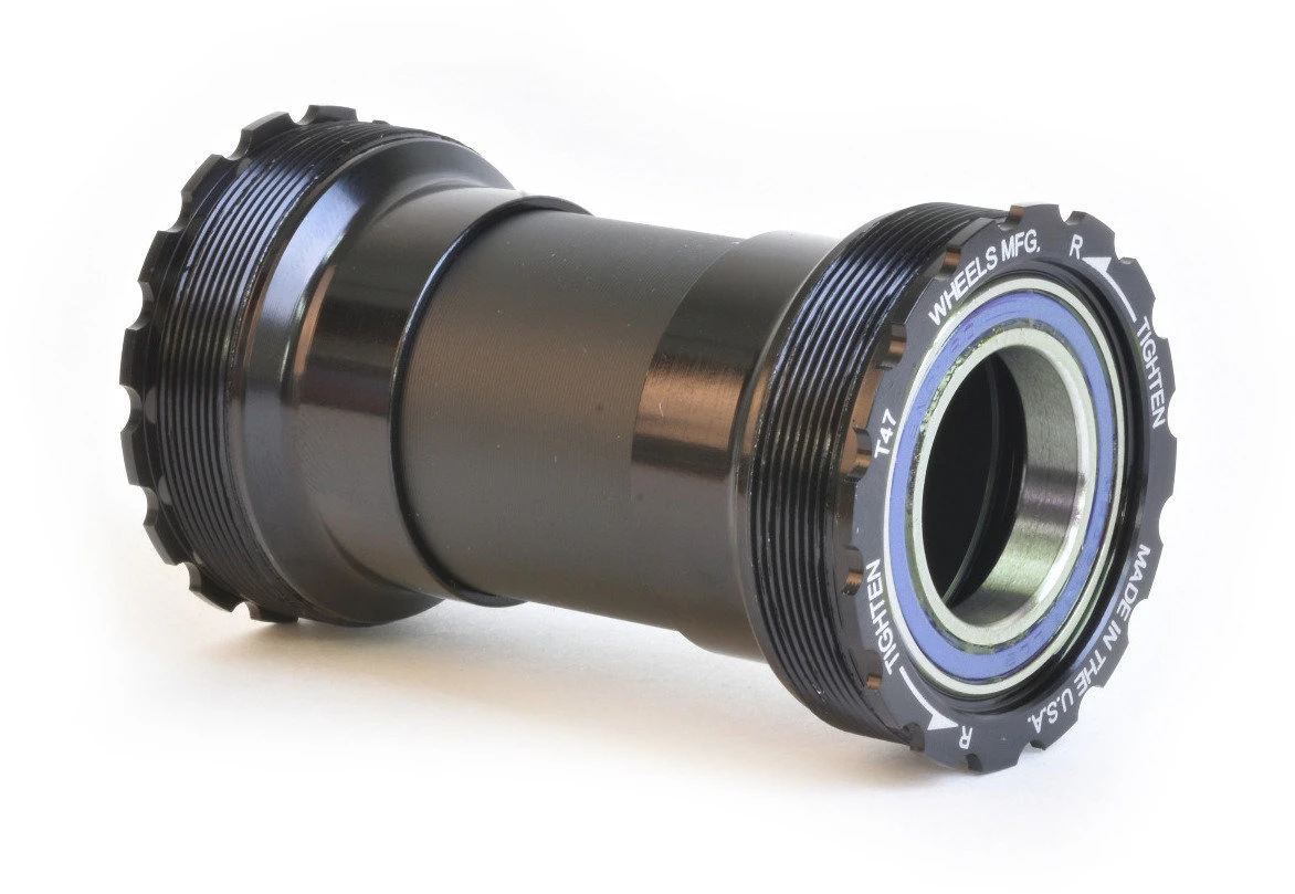 T47 threaded BB cups for T47 frames and 22/24mm spindle diameter SRAM GXP cranks. Cups have internal bearings and are typically used in BB shells with widths wider than 73mm. Machined aluminum cups thread together directly into a T47 BB shell. Bearings are easily serviced or replaced. Includes sleeve to fit between cups for added protection from dirt and grime, and also keeps your internal wires and hoses from rubbing on the crank spindle.